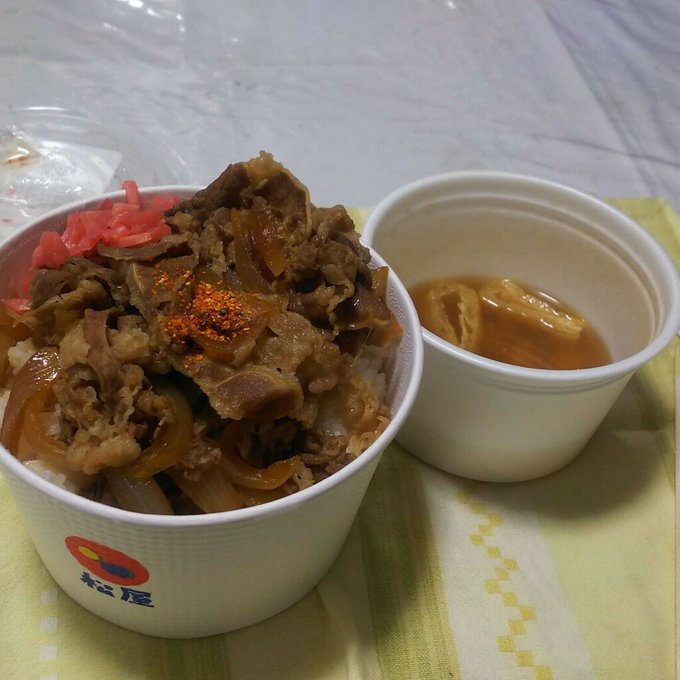 吉野家と違い、松屋は紅ショウガなどは自分で撮るのですが、なんか吉野家の牛丼で紅ショウガと七味唐辛子をつけるののを当然のようにしていたので、つい、紅ショウガと七味唐辛子も載せましたが…。それにしても…。松屋の持ち帰りの牛めしは、ごはんと具がセパレートになっていたのですが、一気に盛ったら食べづらかった…。