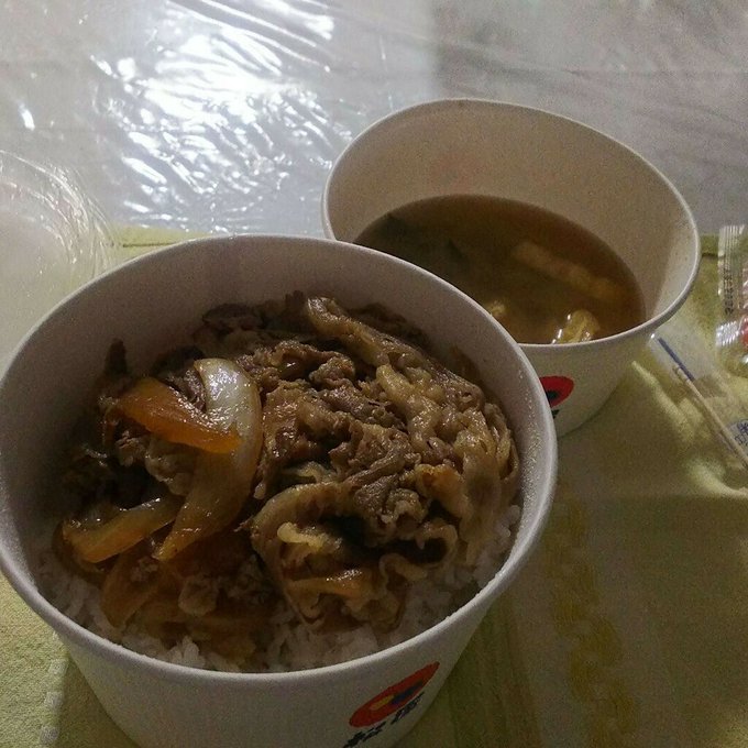 いまは持ち帰りにもみそ汁がついてるみたいです。