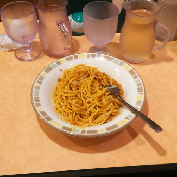 さすがに、先に飲んでいた赤ワインと同じペースでは飲めなかったものの、まだスパゲティーを 3割hど残して飲み終えてしまったよ。