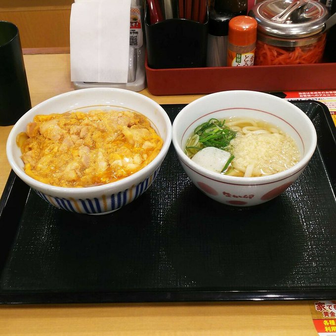 なか卯に行った。なか卯といえば、やっぱり親子丼かな…。そして、先月だったかな? なか卯に行った時に、10月 31日まで使える、はいからうどん ( 小 ) の無料券をもらっていたので、はいからうどん ( 小 ) と親子丼をいただきました。