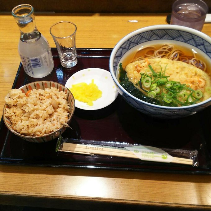 そして帰りに若菜そばという駅そばに寄りました。ここではだいたいかやく定食というものを頼みます。オイラはかやくごはんときつねそばでかやく定食を食べることが多いのですが、酔っていたせいか、食券を買う時にきつねそばではなく天ぷらそばのボタンを押してしまいました…。