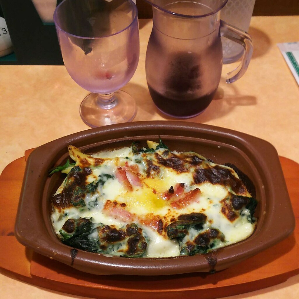 お店は混んでいたので、そのせいか料理がなかなか来なくて、料理が来る前に 250mlを飲み干すかと思った…。